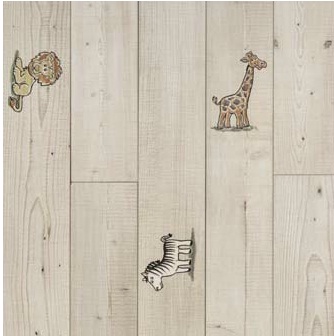 Lowe’s is the only retailer of Pergo MAX – a line of new products launched by Pergo – and the only place you’ll find Zoo Friends. According to the Lowe’s product page, Zoo Friends’ “ultra-realistic design features a blacklight sensitive characteristic; the cosmic stars are mostly visible under normal lighting, but becomes evident when exposed to a blacklight source.”